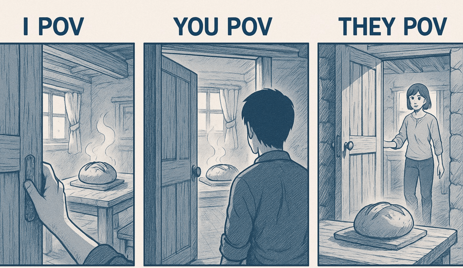 I POV: "I walked into the cottage and saw fresh bread waiting."